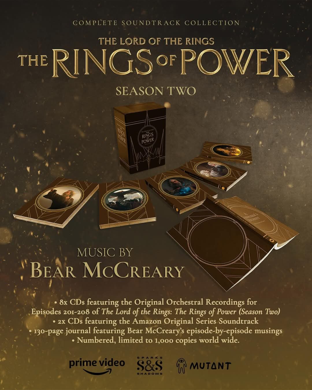 Mutant is proud to announce a distribution partnership with Sparks & Shadows Records, an independent record label formed by Emmy and BAFTA Award-winning composer Bear McCreary. Last year, Mutant was the physical media home for McCreary’s debut rock record, The Singularity, a concept album featuring legendary rock talent including Slash, Serj Tankian (System of a Down), Corey Taylor (Slipknot), Rufus Wainwright, and many more. Mutant will now be the home and co-distributor of Sparks & Shadows’ back catalog on physical media, including McCreary’s scores for films, TV shows, and video games such as Black Sails, Da Vinci’s Demons, 10 Cloverfield Lane, Call of Duty, and much more. To celebrate this collaboration, Mutant is excited to premiere The Lord of the Rings: The Rings of Power (Season Two Complete Soundtrack Collection from the Amazon Original Series) This 10xCD box set features the complete episodic scores for all eight episodes of Season Two of the hit series, as well as the original soundtrack album. The limited-edition, numbered set also contains a 130-page booklet featuring liner notes by composer Bear McCreary. The Lord of the Rings: The Rings of Power (Season Two Complete Soundtrack Collection from the Amazon Original Series) is now available for pre-order at madebymutant.com