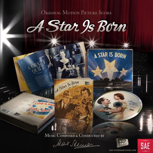 Brigham Young University Film Music Archive Production. All proceeds from this limited edition compact disc go towards the acquisition, preservation of film music elements and public future releases. Produced by David O. Selznick in 1937, A STAR IS BORN is the story, remade many times, of a young girl with dreams of fame who falls in love with a star whose talent and popularity are on the wane. Max Steiner’s score beautifully accompanies the on-screen romance and heartbreak of this classic Technicolor drama. But the story of the score is a drama in itself and this CD, taken from the composer’s personal acetates which are preserved in the Max Steiner Collection at Brigham Young University, presents, in comprehensive fashion, multiple versions of cues that were written and re-written for the film. In large part, the discs were in excellent condition, while a few had obviously been played numerous times over the years. The package includes a 40 page book with an introduction by Steiner biographer Steven C. Smith and notes by Ray Faiola, who also restored the score and produced the CD master. Package design by Jim Titus. Produced with the cooperation of Warner Bros. Entertainment. 01. Main Title 1:46 02. Advice from Granny (replaced) 3:47 03. Advice from Granny (film version) 3:44 04. Farewell at Depot (replaced) 1:13 05. Arrival at Hollywood 1:55 06. Job Search (replaced) 2:04 07. Job Search (film version) 2:05 08. A Drink With Danny 1:12 09. Finally a Job 2:08 10. Impressionable Waitress (unused) 1:59 11. Contemplations Waltz (unused) 1:27 12. Good For Amusement Only (unused) 6:24 13. Driving Esther Home (partially unused) 2:41 14. The Enchanted Hour Preview 1:32 15. Trocadero Terrace 2:23 16. Boxing Arena Exit Music 1:01 17. Honeymoon Trailer 0:44 18. Gossip Column / The Maine Mansion 1:48 19. A Star is Born / Box Office Poison 2:22 20. Home From the Studio (replaced) 0:57 21. Home From the Studio (film version) 0:57 22. Dressing Table (replaced) 2:48 23. Dressing Table (film version) 2:22 24. Sign Here Mr. Lester (replaced) 1:33 25. Sign Here Mr. Lester (film version) 1:33 26. Academy Award Foxtrot (replaced) 1:14 27. Academy Award Foxtrot (film version) 1:13 28. Oliver Offers to Help (replaced) 1:28 29. Bailed Out / Vicki’s Sacrifice 2:34 30. Norman Commits Suicide 4:03 31. Funeral Mob 1:34 32. Mrs. Norman Maine / Finale 1:03 33. Trailer Score Part Two 1:44