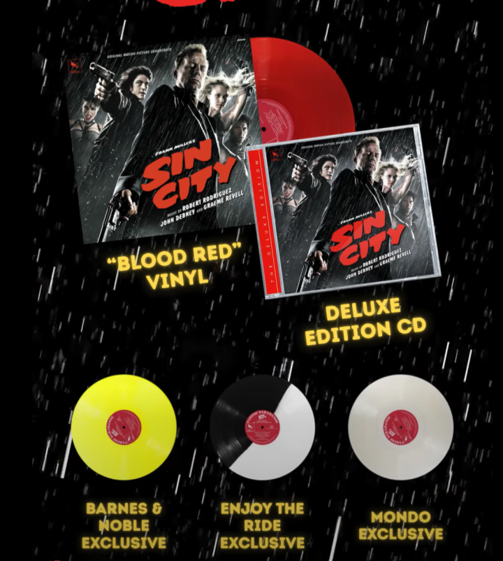 3. Es kommt noch besser The new vinyl edition of the OST album has 4 variants available: Varese variant: https://varesesarabande.com/collections/vinyl/products/sin-city-lp Mondo variant: https://mondoshop.com/products/sin-city-original-motion-picture-soundtrack Enjoy the Ride variant: https://enjoytheriderecords.com/collections/enjoy-the-ride-records/products/sin-city-original-motion-picture-soundtrack-etr-exclusive-color-variant-pre-order Barnes & Noble variant: https://www.barnesandnoble.com/w/sin-city-original-motion-picture-soundtrack-robert-rodriguez/1149336891?ean=0888072751569